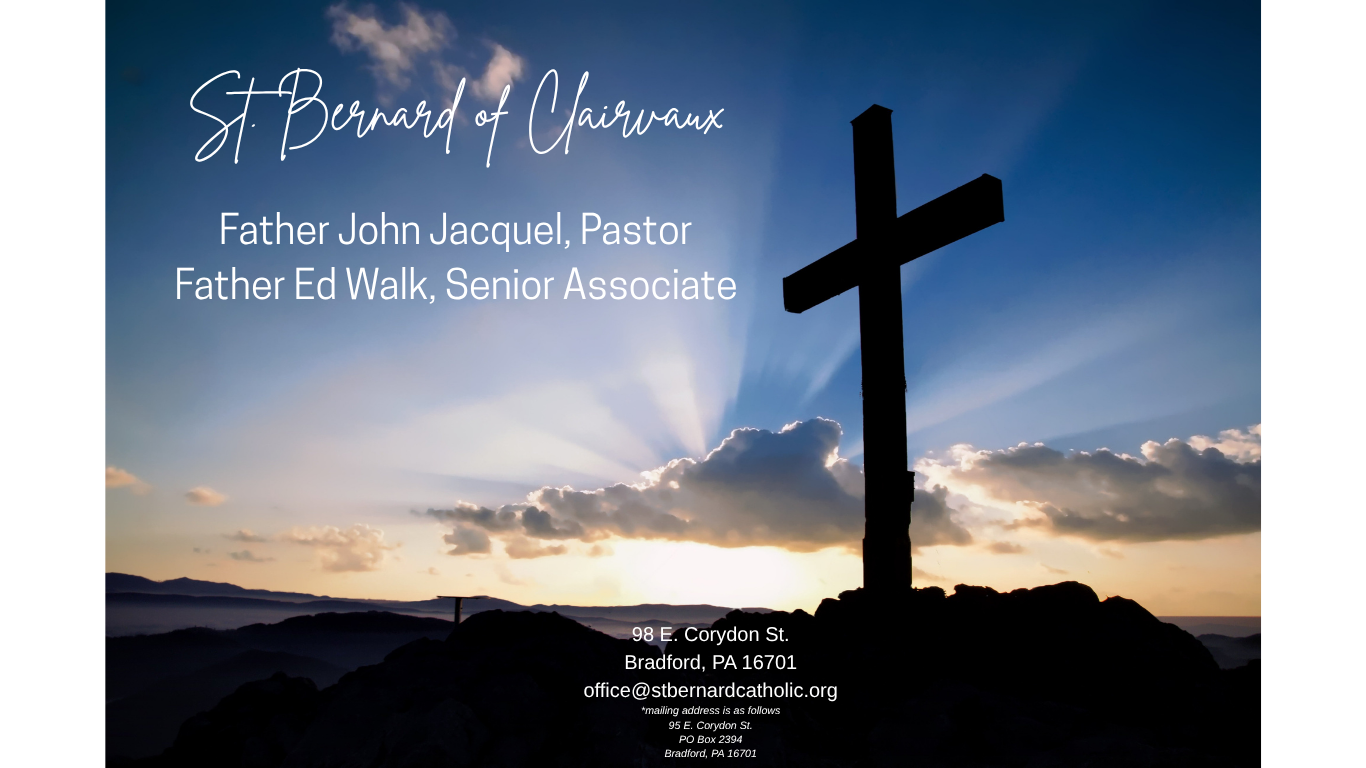 Weekly Mass ScheduleSunday: 8am at St. Bernard Church, 10am (livestream) at St. Bernard Church, 11:30 at St. Bernard Church